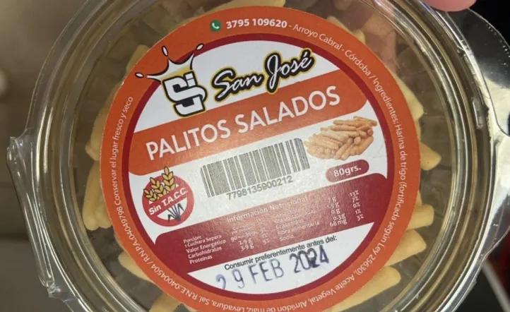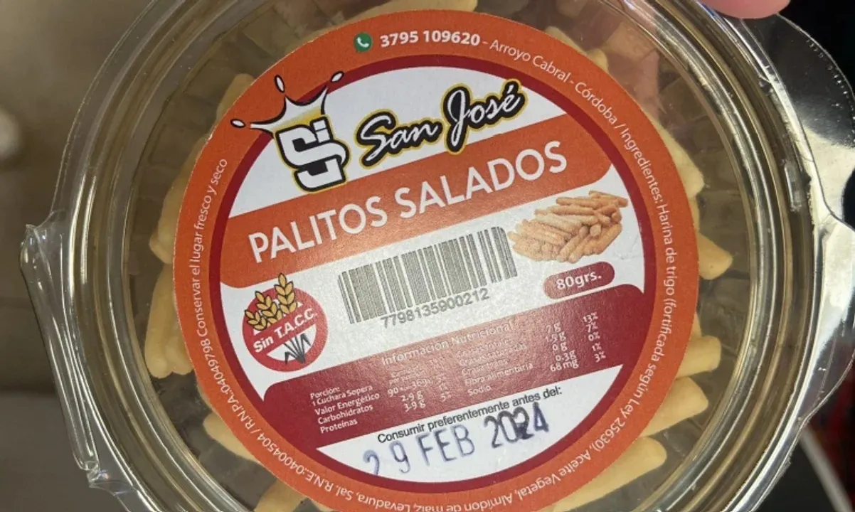 "Prohíbese la elaboración, fraccionamiento y comercialización en todo el territorio nacional, y en las plataformas de venta en línea de los productos: Palitos Salados, marca San José, RNE: 04004504 - RNPA: 04049798, Arroyo Cabral, Córdoba, con el símbolo Sin TACC, y Maní crocante sabor Salame, marca San José, RNE: 04004208, RNPA: 04077982, Arroyo Cabral, Córdoba, con el símbolo Sin TACC”,