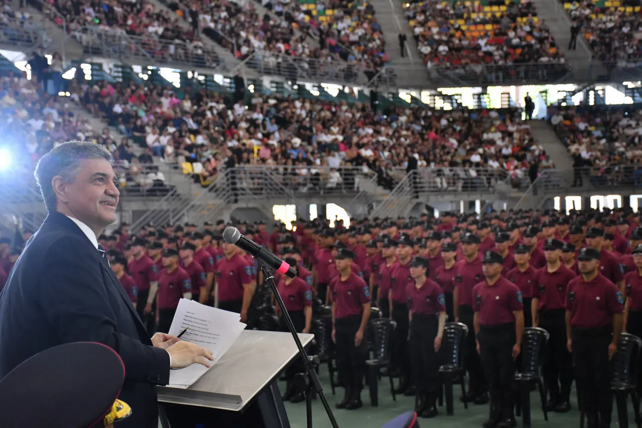 Luego, Jorge Macri les pidió romper el protocolo a los nuevos policías: “Sé que todos ustedes cadetes tienen la obligación de prestar atención a mí o a quienes hablaron antes. Pero ahora les pido que miren lo más importante que cada uno de ustedes tiene. Busquen en estas tribunas maravillosas a sus familiares que vinieron acá acompañarlos y las familias, y aprovechen para saludarlos”. Fue un momento de gran emoción para todos.