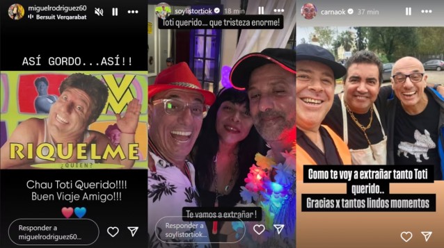 A ellos se sumó el recuerdo de Carna: “Como voy a extrañar, Toti querido. Gracias por tantos lindos momentos”.