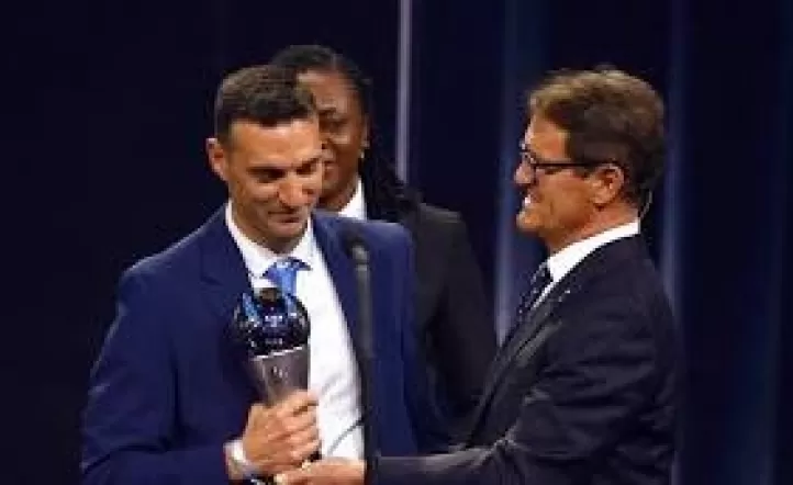El DT de la Selección argentina ganó el galardón en la ceremonia The Best: "Quiero agradecer por el premio a todos, especialmente a los 26 jugadores que nos llevaron a la gloria, sin ellos no hubiéramos podido conseguir nada; al presidente de la AFA por permitirme ser entrenador de la Selección argentina, a todo mi cuerpo técnico que son amigos, eternamente agradecido".