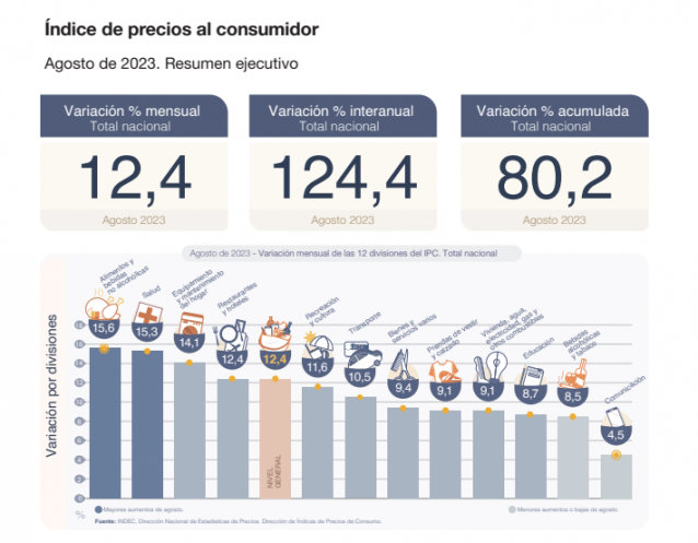 LA INFLACIÓN DE AGOSTO FUE DEL 12,4%, LA MÁS ALTA DE LOS ÚLTIMOS 32 AÑOS