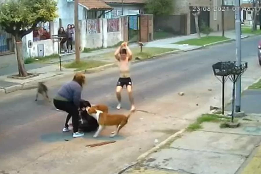 La víctima corrió hacia la calle y de repente apareció otro perro que también comenzó a atacarla. A los pocos segundos, otro animal se sumó y entre los tres le mordieron las piernas. Alertados por los gritos desesperados, los vecinos empezaron a salir de sus casas.
