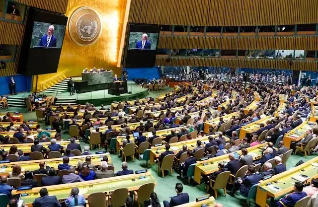 La Asamblea General de la ONU aprobó este viernes la “Declaración de Nueva York”, que busca revitalizar la solución de dos Estados para Israel y Palestina, excluyendo explícitamente cualquier participación de Hamas. La resolución, impulsada por Francia y Arabia Saudita, obtuvo 142 votos a favor, 10 en contra —entre ellos Argentina, Israel, Estados Unidos y Hungría— y 12 abstenciones.