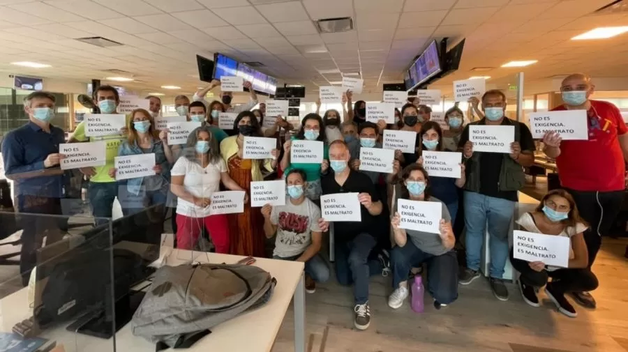 Las fotos y los videos de la protesta que hicieron los trabajadores de la redacción de América TV y A24 -en la asamblea de prensa organizada en el SiPreBA-, donde imprimieron y pegaron por todas las instalaciones hojas que expresan: "No es exigencia, es maltrato", trascendieron en Twitter y Ángel de Brito no tardó en retuitearlo para darle mayor visibilidad.