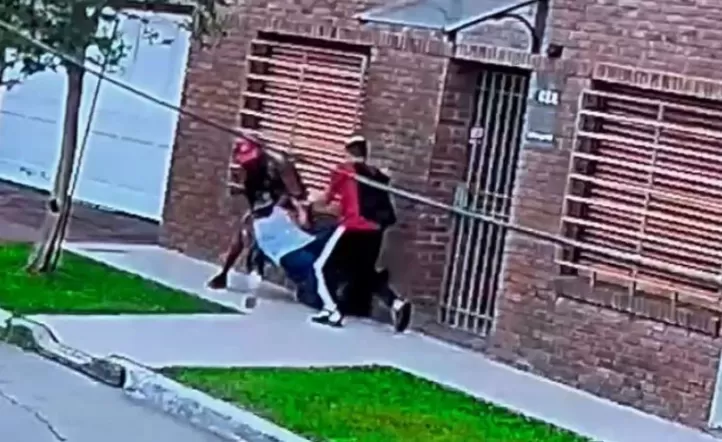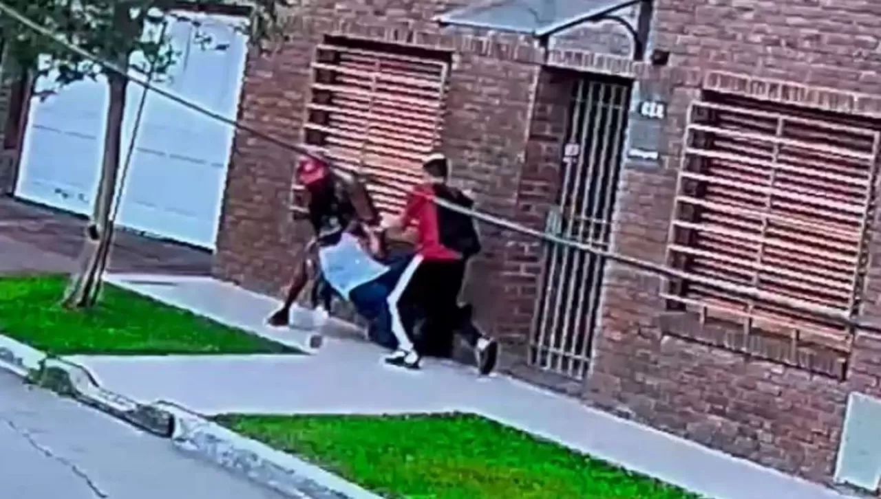 Quedó todo grabado por las cámaras de seguridad. Los asaltantes interceptaron a la mujer mientras esperaba en la vereda y la abordaron con mucha violencia.