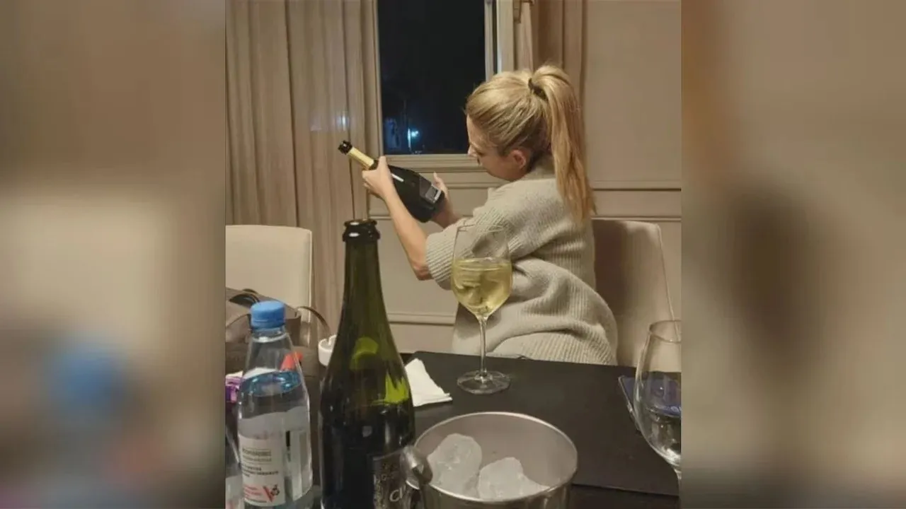 La mujer aportó tres imágenes. En una se la ve a Fabiola en la Quinta de Olivos, sosteniendo una botella de champagne.