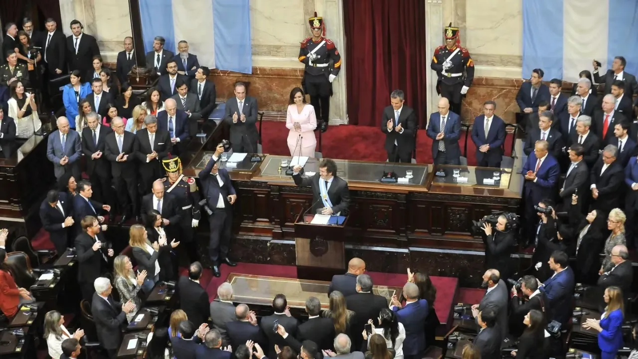 El presidente Javier Milei inauguró este viernes por primera vez el período de sesiones ordinarias del Congreso, con un discurso que se transmitió por cadena nacional, en el que expuso "la realidad" del país e hizo referencia a la situación económica heredada por su administración, a modo de balance de sus primeros dos meses de gobierno.