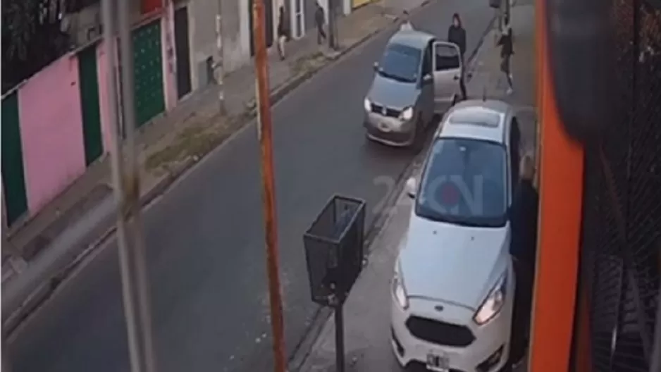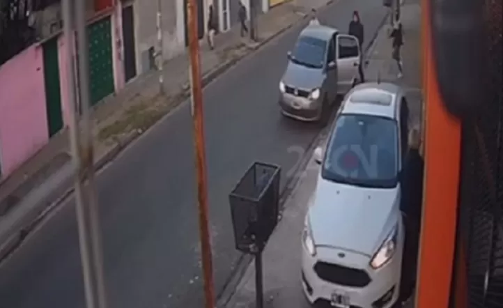 El video muestra cómo Ariel, el protagonista del hecho, ingresó al auto blanco que estaba estacionado en la vereda al mismo tiempo que su hijo. Apenas unos segundos después, un vehículo gris se les puso a la par y del mismo bajaron tres delincuentes.