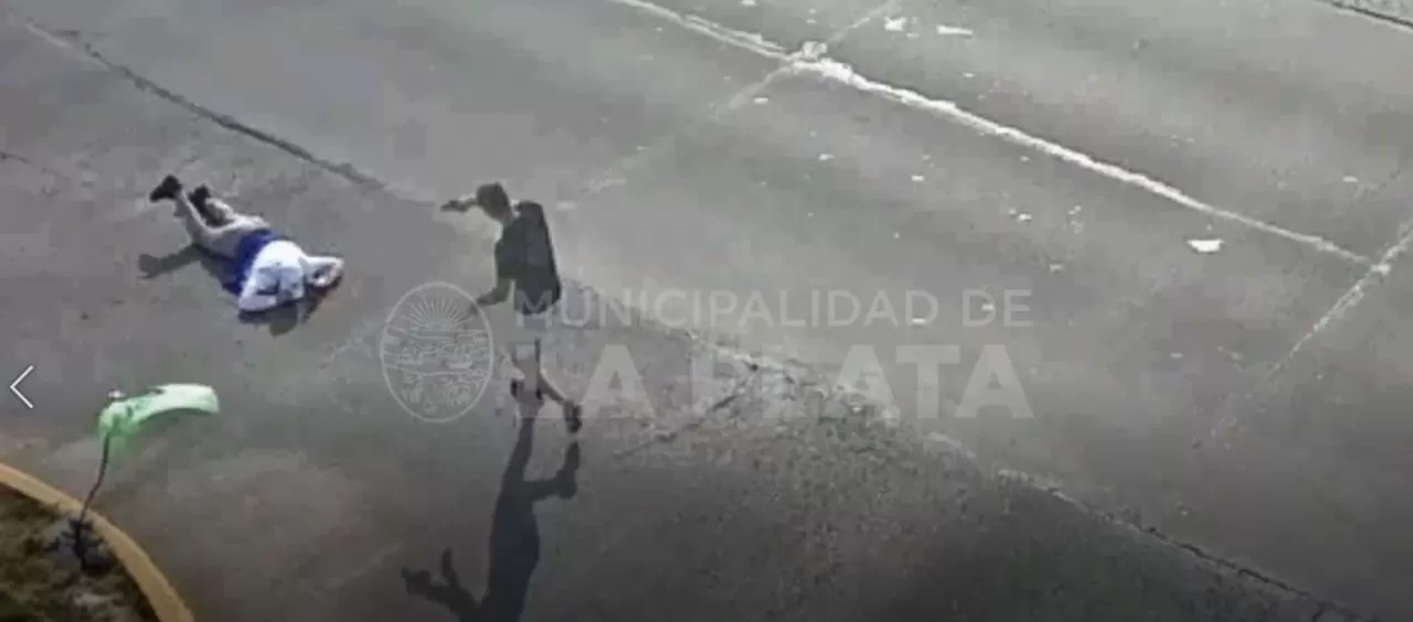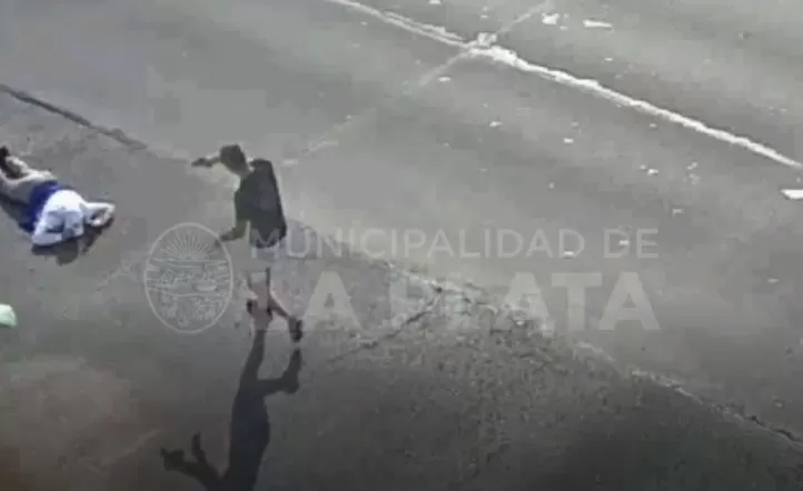 El violento episodio ocurrió en La Plata y fue grabado por las cámaras de seguridad del municipio. El ladrón herido tiene 15 años.