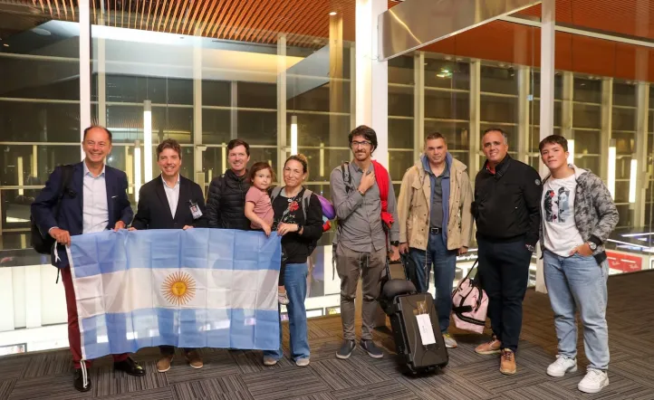 Al aeropuerto internacional de Ezeiza llegaron el encargado de negocios, Andrés Mangiarotti, la jefa de la sección comercial, Bárbara van der Nest Aubert y el jefe de la sección consular, Tomás Gibson, María Silva De Andrés, Ezequiel y David Fournier, Natasha Loizou, Horacio, Leonardo y Fedra Muzzi, y Andrés y Triana van der Nest Aubert Casas. En otro avión, llegaron Santiago Valle y Norberto Fernández.