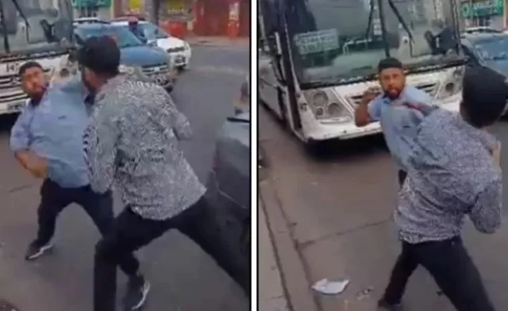 Al escuchar los insultos un transeúnte rodea al colectivo y filma como el conductor le tira algunas trompadas al automovilista y este, lejos de replegarse, se pone en guardia, se “planta” y contesta al ataque con una serie de golpes.