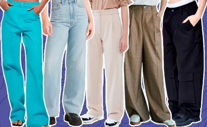 De denim, de géneros de vestir, cuadrillé, sporty y cargo, todos con un calce loose desde la cintura hasta el piso. Cuanto más largos, mejor; en muchos casos tapan el zapato ¡y eso está muy bien! Usalo con una prenda ajustada arriba para marcar un poco el cuerpo o con algo bien oversize; de ambas maneras queda genial, todo depende de tu estilo.