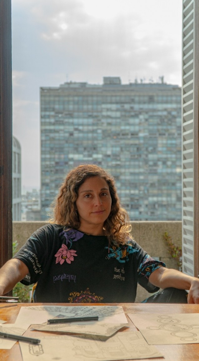 Flor Labanca es diseñadora gráfica e ilustradora. Nació en Buenos Aires pero vivió gran parte de su adolescencia en Montevideo, Uruguay. Quizás por eso, quedó atrapada por el magnetismo de los íconos indiscutidos de ambas orillas del Río de la Plata: El Palacio Barolo y el Palacio Salvo. Hoy lleva adelante un proyecto editorial para plasmar en el papel los misterios de ambos.