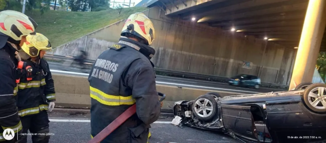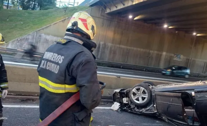 La imagen que acompañaba el relato era elocuente: el auto quedó volcado contra uno de los guardarraíl de la avenida General Paz, mientras que otro auto tenía chocado el frente.