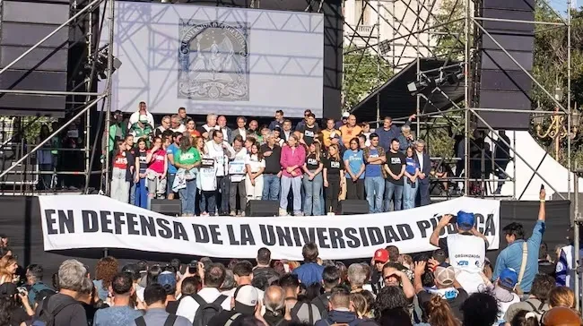 En la marcha universitaria, frente al Congreso, leyeron un duro documento en el que cuestionaron los ajustes del Gobierno. La manifestación se repitió en otros puntos del país. “La Educación pública nos iguala y nos hace libres”, afirmaron. “Es una marcha antigobierno”, cuestionó el secretario de Educación de la Nación.