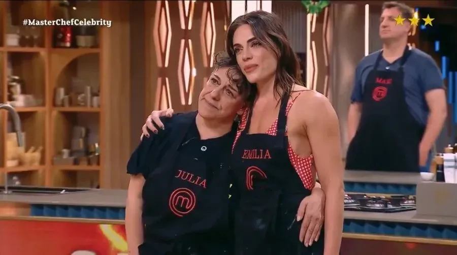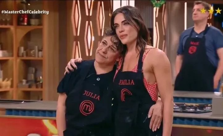 Las lágrimas de tristeza no tardaron en salir en el rostro de Julia Calvo, visiblemente conmocionada por la decisión de los chefs, mientras se abrazaba fuertemente a su compañera y amiga Emilia Attias.