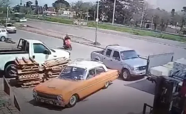 En las imágenes se ve cómo una Ford Ranger gris se detuvo frente a un comercio de cerámicas. Segundos después, el conductor abrió la puerta para bajar, sin revisar el espejo retrovisor.