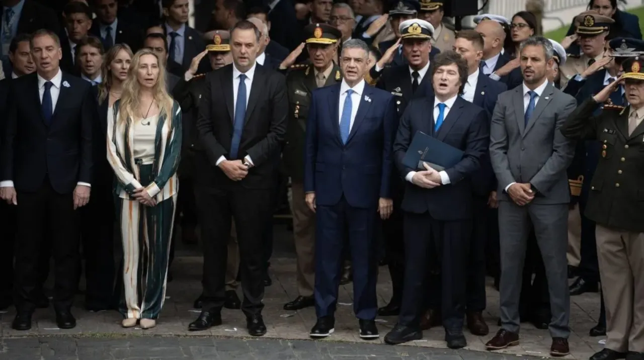 Milei dijo: “Como cada 2 de abril, estamos reunidos para recordar y honrar a aquellos que ofrecieron su vida por el valor supremo de la defensa de la Patria. Esos héroes que han sabido encarnar la expresión más pura del espíritu nacional”.