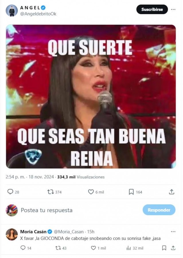 Anteriormente, Ángel de Brito había compartido un meme con la frase “qué suerte que seas tan buena reina”. Su posteo surgió porque Pampita optó por no contar en profundidad lo que pasó con García Moritán.