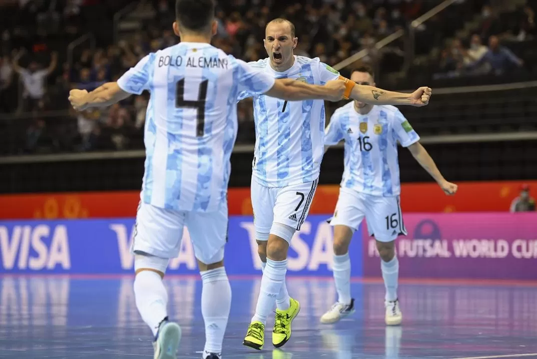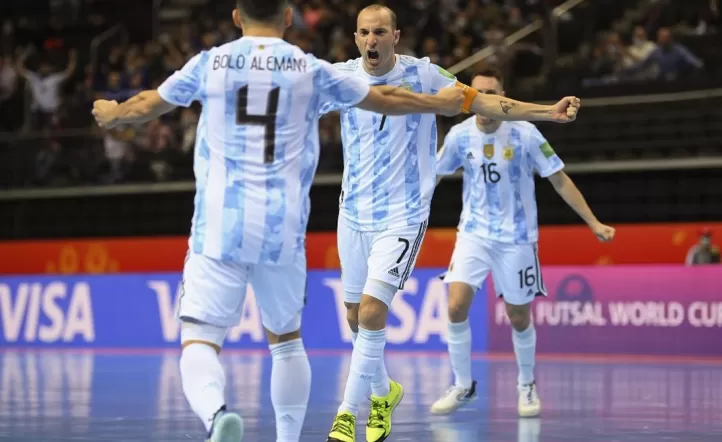 El equipo argentino de Futsal, actual campeón mundial, le ganó este domingo a Rusia por 5 a 4 por penales. Había empatado 1 a 1 durante el tiempo reglamentario.