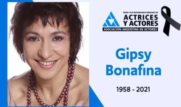 "Lamentamos el fallecimiento de la actriz y cantante Gipsy Bonafina, abrazando a sus familiares y amistades en este duro momento. Llevó adelante una nutrida y destacada trayectoria artística en teatro, cine, televisión y música", escribieron desde la Asociación.