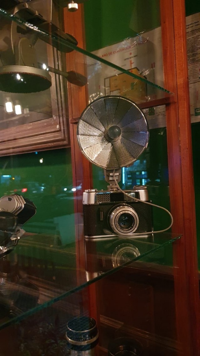 Está repleto de vitrinas con objetos relacionados con la historia de la fotografía. Van a poder ver desde un visor de imágenes estereoscópicas de fines del siglo XIX “Made in France” hasta cámaras de cajón, de estudio, portátiles, de madera y con fuelle.