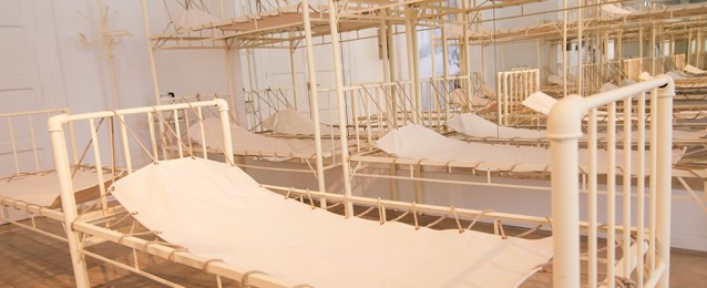Hiela la sangre ver los catres desprovistos de colchones (para evitar enfermedades), gaitas, castañuelas, muñecos, valijas antiguas, cartas y los rostros sin sonrisas de los recién llegados.
