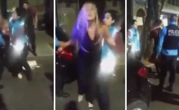 El escándalo ocurrió en el barrio Colegiales. La mujer gritaba, golpeaba cosas, agredió a una policía y hasta besó a un oficial en medio del ataque de furia.