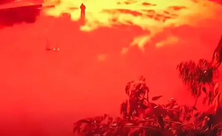 Rápidamente todo se tiñó de rojo y el suelo se llenó de una capa de humo. Todos corrieron a máxima velocidad, incluso algunos que manejaban camiones y otros vehículos huyeron en ellos. Los fuertes colores y el brillo de la llamarada acapararon toda la visión por varios minutos, mientras quienes estaban en la zona intentaban huir. Todo mientras el humo continuaba subiendo.