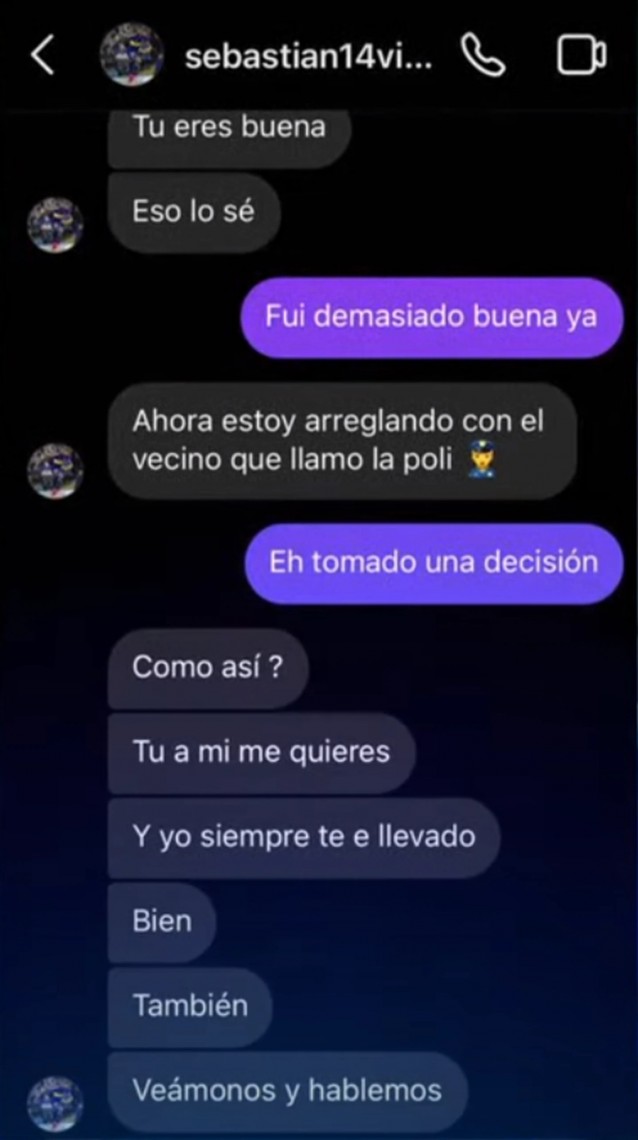 En otro, todavía más comprometedor, el colombiano se refirió a un hombre que habría escuchado gritos en el hogar de la denunciante: “Ahora estoy arreglando con el vecino que llamó a la poli”.