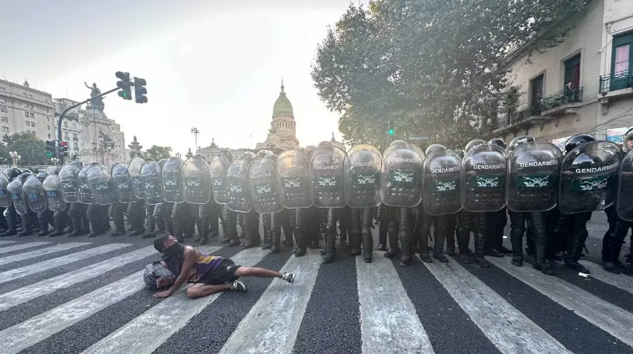 El miércoles, piqueteros, partidos de izquierda y organizaciones sociales que se concentraron frente al Congreso en rechazo de la Ley Ómnibus se enfrentaron con la Policía, que se desplegó para impedir el avance de la marcha e intentó aplicar el protocolo antipiquetes para evitar el corte de tránsito de la Avenida Rivadavia, que igualmente se concretó.