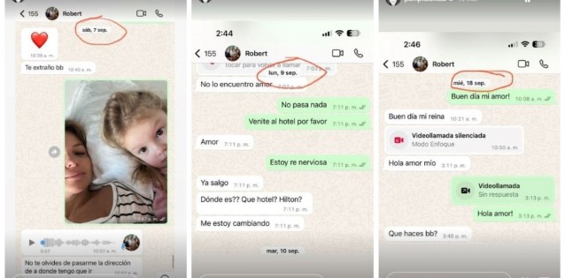 Instantes después, Pampita compartió otro par de capturas de chats, y al igual que en las anteriores, resaltó las fechas para demostrar que su relación seguía en perfecto estado entre el 3 y 5 de septiembre.