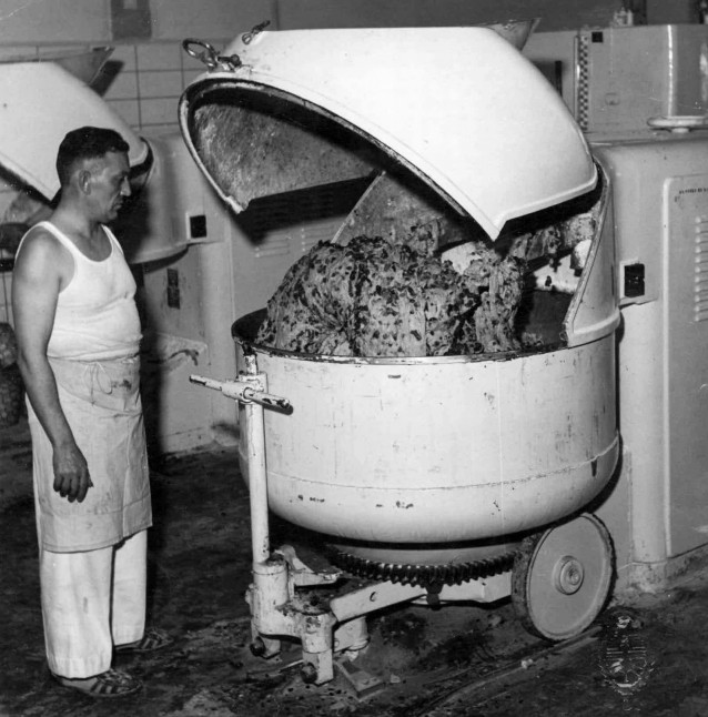 Las imágenes de archivo son elocuentes para contar la evolución del pan dulce; como esta fotografía de 1920 del AGN que muestra una sobadora de la Fábrica Talleres y Panadería "Viuda de Canale e hijos".