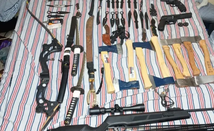El agresor envió audios escalofriantes asegurando que los mataría. La policía le encontró desde catanas y flechas hasta rifles de aire comprimido.