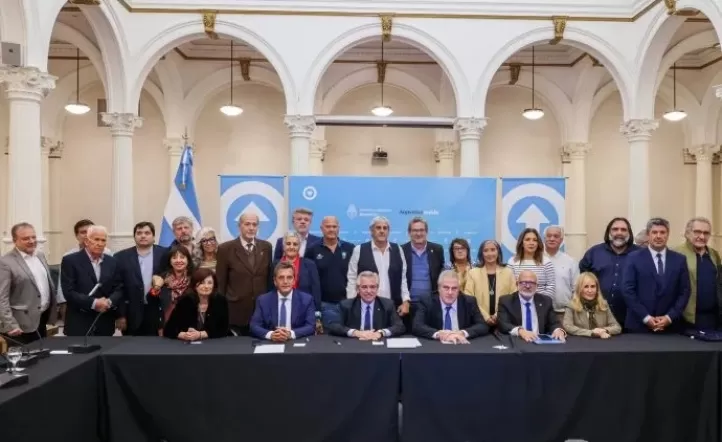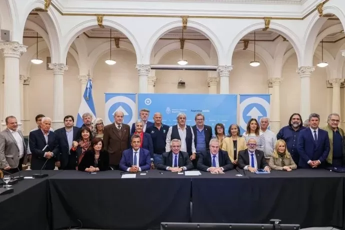El Gobierno firmó un aumento del 33,5% del salario mínimo hasta julio. De la reunión participaron el presidente Alberto Fernández y el ministro de Economía, Sergio Massa.