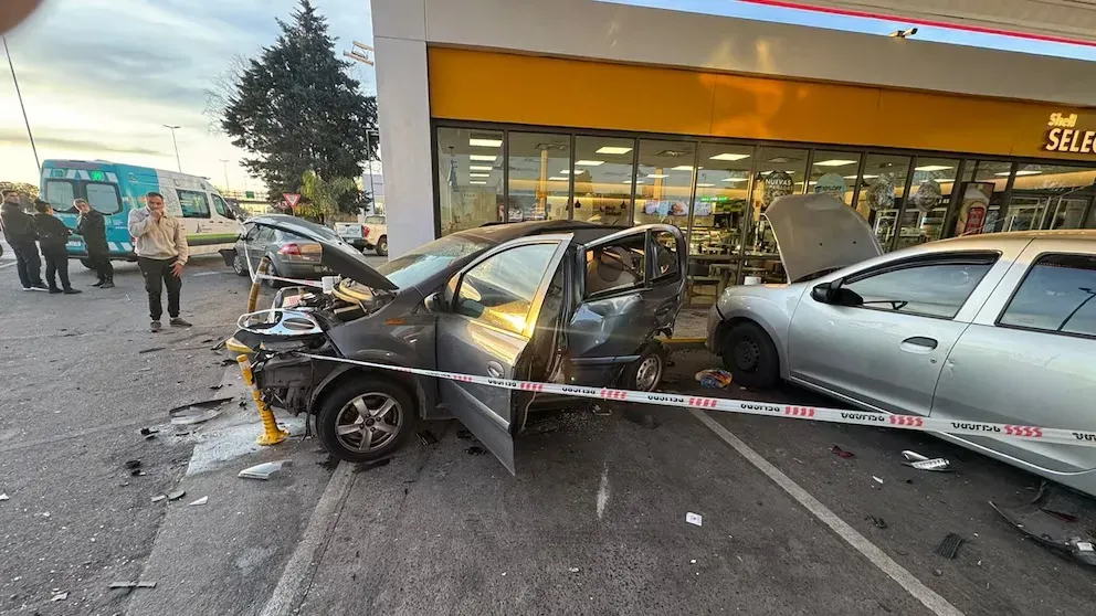 En un momento, por razones que aún no están claras, el conductor perdió el control del vehículo, se desvió de su carril e impactó primero contra un Jeep, luego contra otro Renault y, finalmente, contra un Fiat Mobi que estaba detenido en el playón de una estación de servicio Shell.