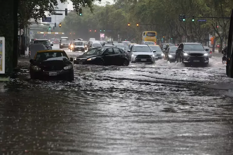 En avenida Santa Fe, entre 9 de Julio y Callao, el agua llegó hasta la puerta de los locales. También hay zonas de Palermo que se encuentran inundadas, como la esquina de Santa Fe y Julián Álvarez.