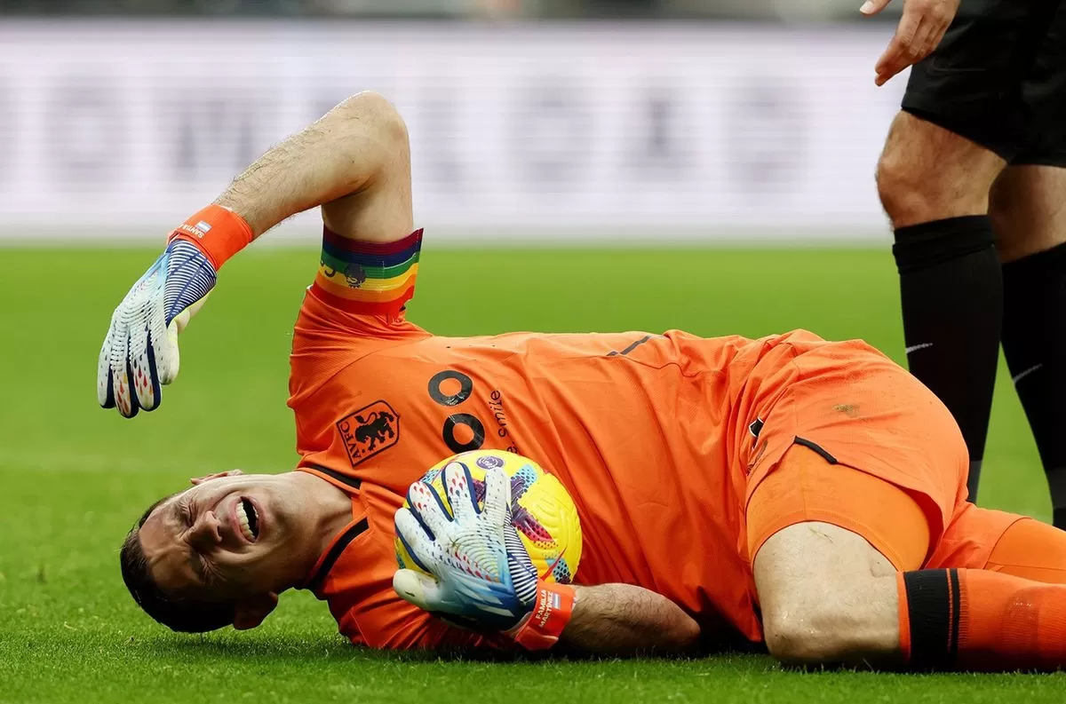 El arquero argentino contuvo un remate desde afuera del área de Joelinton cuando iban 17 minutos del primer tiempo, pero dio rebote y en la embestida por despejar esa pelota, su compañero Mings terminó golpeándolo cuando Callum Wilson, del Newcastle, iba en busca de empujar al gol.