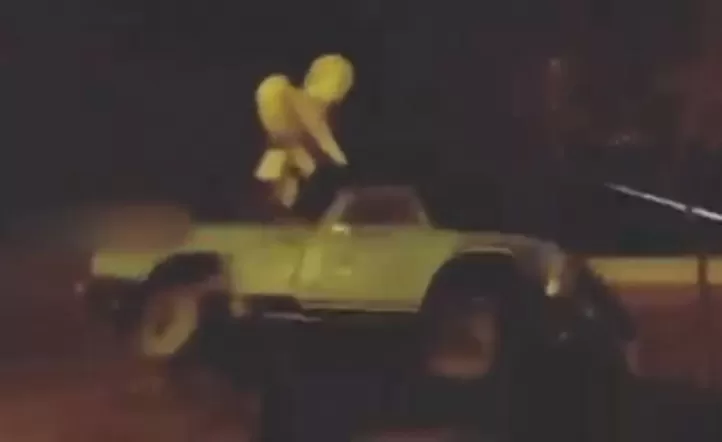 El ataque a la escultura itinerante del expresidente sucedió en el barrio Lonquimay, donde el agresor ató al gancho de su vehículo 4x4 una especie de eslinga que sujetó a la estatua que estaba ensamblada en otra camioneta. Pero luego de que el hombre acelerara, su utilitario arrastró al busto y también a la otra camioneta dejando al otro vehículo semivolcado hacia su izquierda.