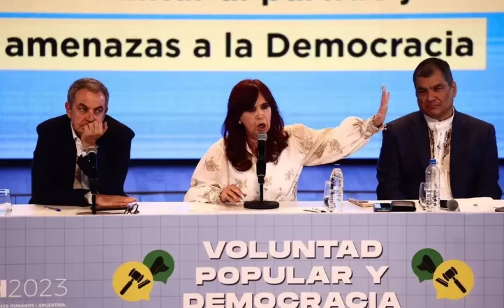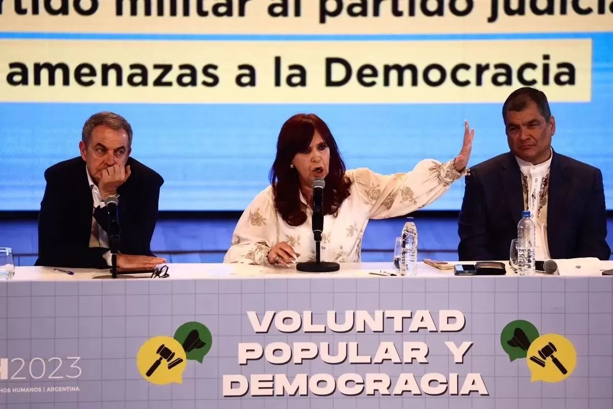 La vicepresidenta cerró el foro del Grupo de Puebla junto a expresidentes y juristas de Iberoamérica que denunciaron un intento de proscripción y “magnicidio civil” en su contra.