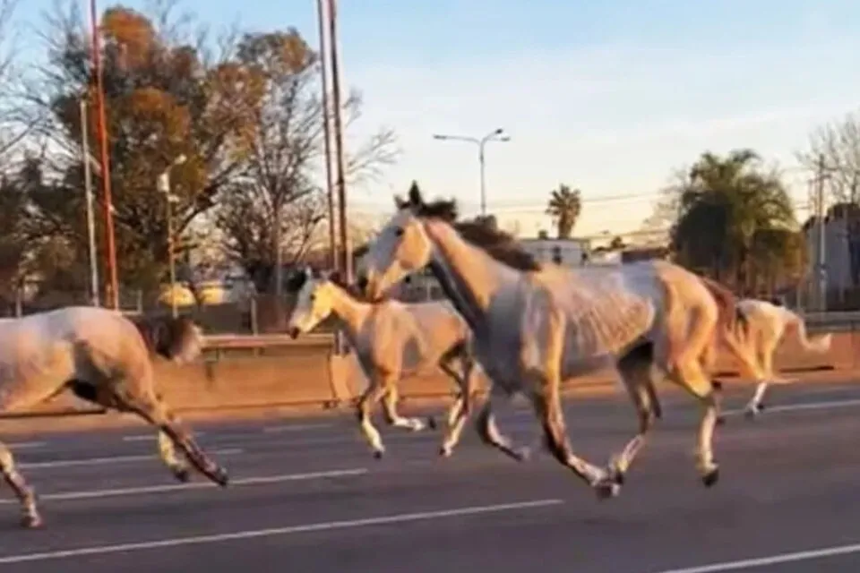 El episodio quedó registrado por las distintas cámaras de seguridad instaladas en la zona. Así, en uno de los videos se logra ver a la tropilla atravesando al galope por la autopista, en medio de los diferentes vehículos que transitaban por el lugar.