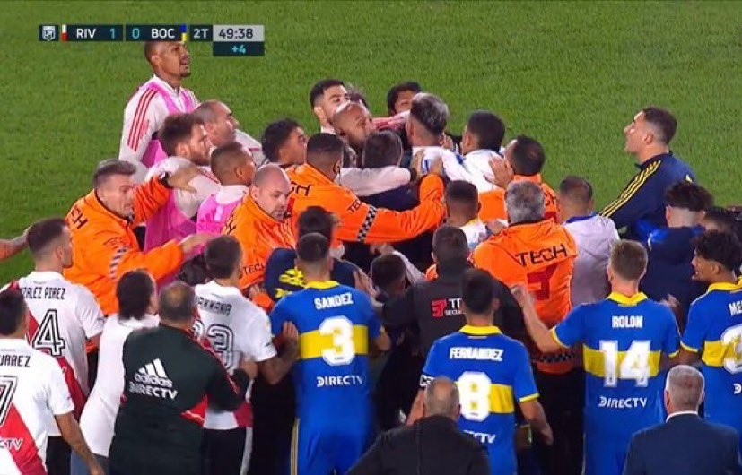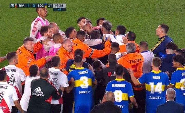 En el festejo del único gol del partido, Agustín Palavecino se lo gritó en la cara a Sergio Chiquito Romero y varios futbolistas terminaron a las trompadas: Darío Herrera echó a Palavecino, Elías Gómez y Ezequiel Centurión (River) y Nicolás Valentini, Miguel Merentiel, Ezequiel Fernández y Almirón (Boca).