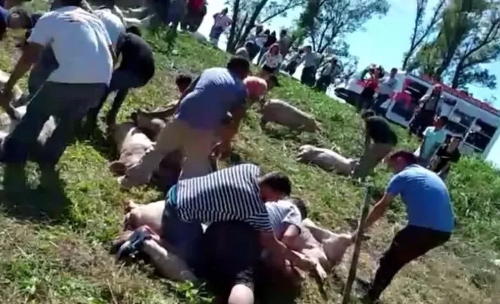 ¿Robo por hambre? Un camión con cerdos vivos volcó en Córdoba y los vecinos los faenaron en la ruta