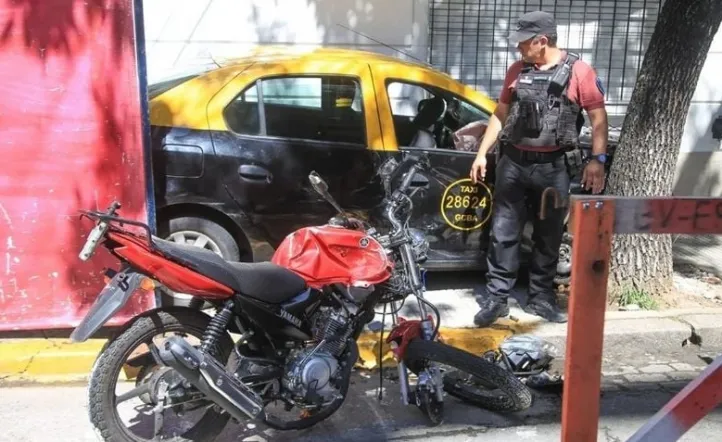 El hecho ocurrió en la madrugada de este domingo, en el cruce de la avenida Juan Bautista Alberdi y Malvinas Argentinas, Caballito. Personal de la Policía de la Ciudad constató que la moto había sido robada momentos antes de la colisión. El taxista y una pasajera resultaron ilesos.