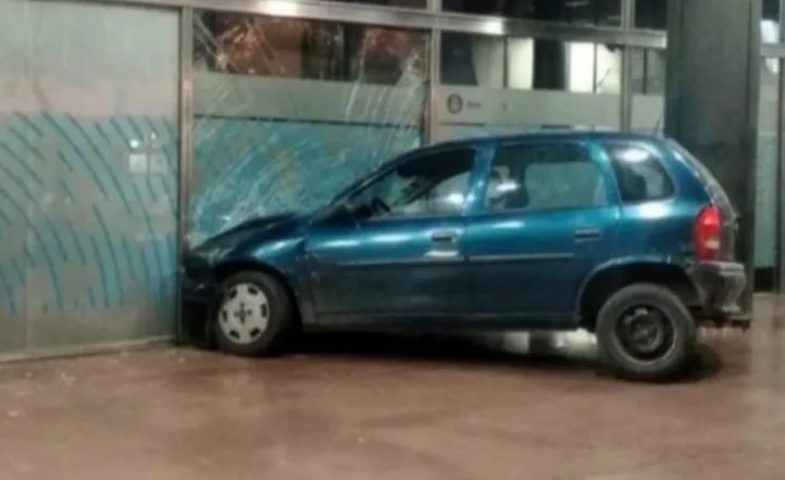 El vehículo chocó contra uno de los laterales de la sucursal céntrica del Banco Nación, donde están ubicados los cajeros automáticos. La violencia con la que manejó hasta el lugar provocó que destruyera el vidrio de la pared del banco.