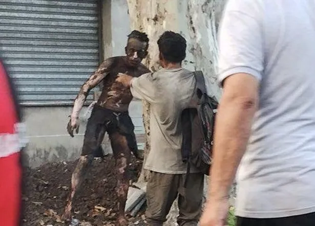 Las imágenes captadas por testigos muestran al delincuente temblando tras salir del pozo y con todo su cuerpo negro, producto de las severas quemaduras que sufrió al recibir la descarga eléctrica. “¡Quedate ahí, quedate ahí!”, se escucha que gritaban los vecinos en una de las filmaciones, en su intento por ayudar al joven pero siempre manteniendo una distancia prudencial. Totalmente desorientado, el asaltante se tambaleaba de un lado a otro y apenas podía mantenerse en pie.