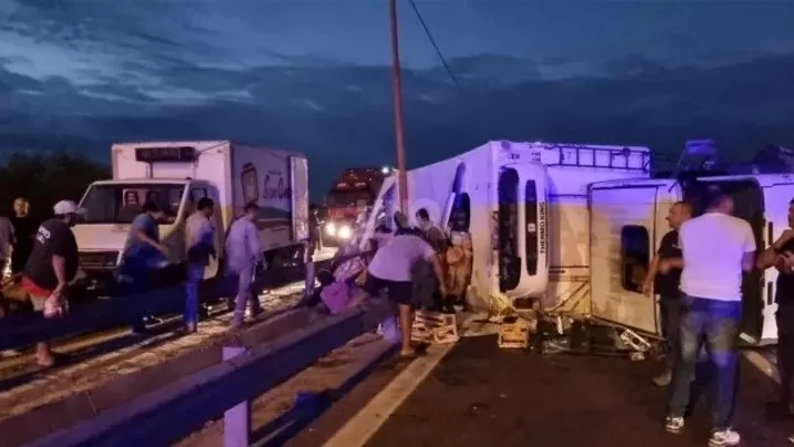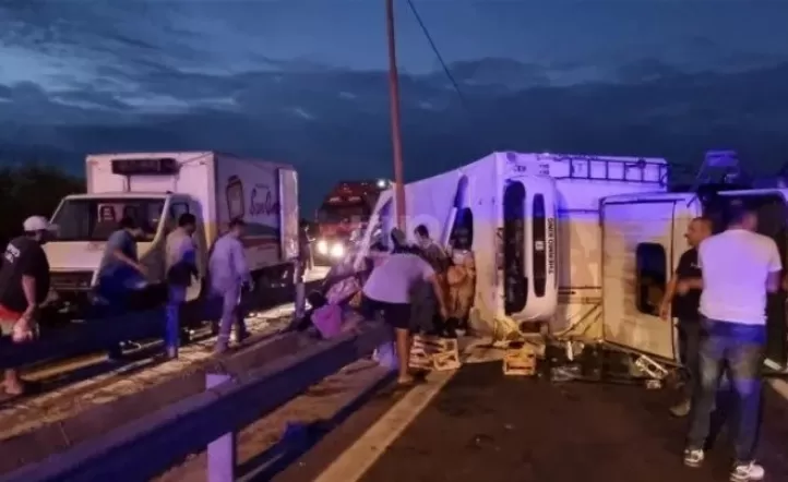 Primero, embistió el guardarrail que divide la cinta asfáltica. Luego, terminó volcando hacia la mano contraria. Producto del violento impacto, cerca de 500 cajones de pollo quedaron desparramados sobre la ruta.