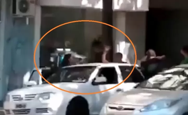 Se viralizaron imágenes donde se ve a la panadera que ayudó a la víctima a escapar del ataque y a su marido golpeándola cuando quería ingresar a su local.