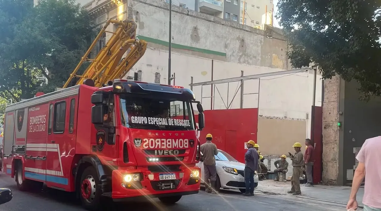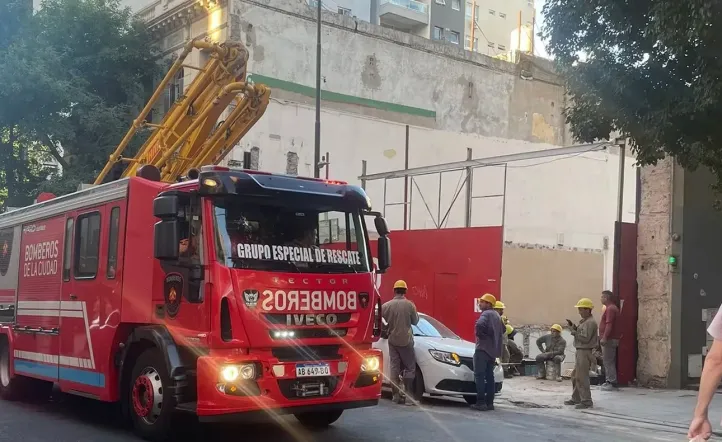 Los bomberos trabajan en el lugar y por el momento no se registran víctimas. Una pared se cayó en un edificio en construcción.