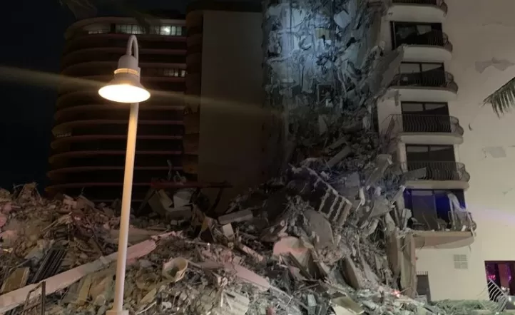 El suceso se produjo entre las calles 88 y Collins Avenue en Surfside, cerca de Miami Beach, en un edificio que compone parte del complejo Champlain Towers. Allí los bomberos llevan adelante una imponente operación de búsqueda y rescate.